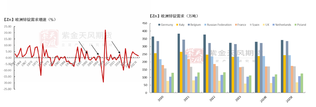 参考历年欧洲锌锭需求,在降息周期开启的背景下,1%的增速相对合理。