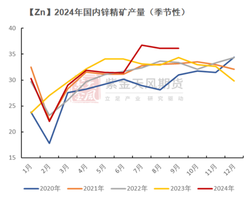 据SMM口径,2024年1-8月锌精矿累计产量249万金属吨,累计同比增加0.92%。预计全年国产锌精矿390万吨,同比增加3.56%。