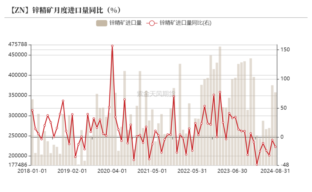 锌精矿-贸易流动:2024年进口同比下滑20%