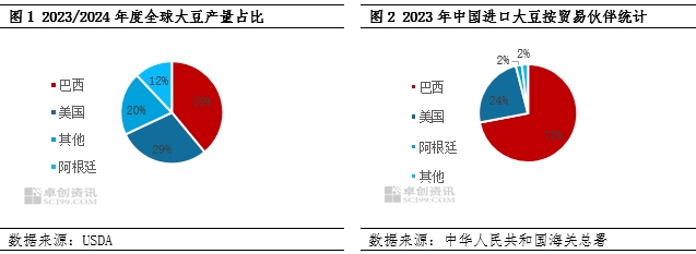 据美国农业部数据显示,巴西大豆年度产量占全球总产量的40%左右,位居全球第一。中国大豆压榨企业的原料大豆长期依赖进口,对于进口大豆来说,来自巴西的大豆占国内总进口量的70%左右,所以巴西大豆产区的极端事件对全球大豆市场及国内豆油市场均会产生明显影响,其中国际大豆价格以CBOT大豆价格为行业风向标。