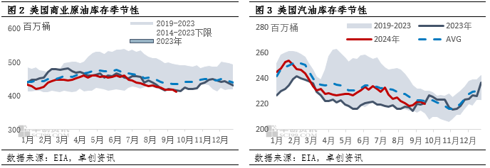 截至9月20日当周的库存数据利好油价,美国商业原油和汽油库存均超预期大幅去库,库欣地区库存小幅增加。但从整体数据来看,美国商业原油进口量上升,出口量下降,当周净进口周度增加,产量受飓风扰动后油田生产恢复较慢影响,与前一周产量持平,较飓风前水平仍旧是下降10万桶/日,同时炼厂开工率进一步下滑,数据项显示的状态似乎并不支持美国商业原油大幅去库,石油表需增加或是去库的原因所在。
