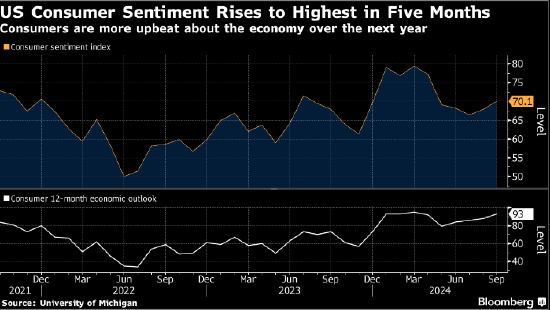 美国消费者信心在9月下旬继续上升,达到五个月高点,受益于美联储降息后对经济的乐观情绪增强。