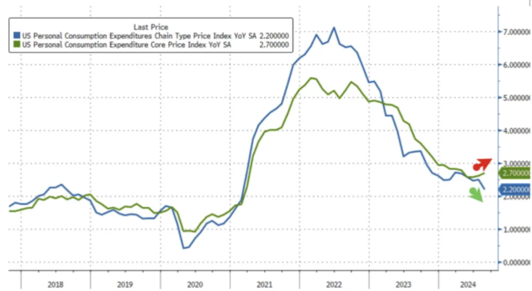 数据显示,美国整体PCE同比下降至2.2%,这是自2021年3月以来的最低水平。核心个人消费支出价格指数(不包括波动性大的食品和能源项目)较7月份上涨0.1%。按三个月的年化率计算,该指标上涨2.1%,符合美联储的目标。