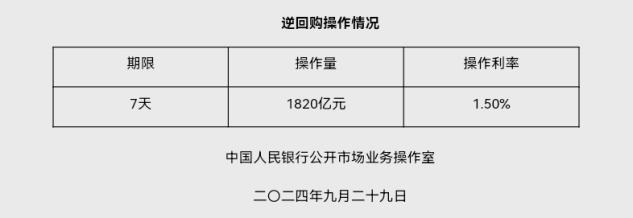 根据央行公告,为维护季末银行体系流动性合理充裕,9月29日央行以固定利率、数量招标方式开展了1820亿元7天期逆回购操作,利率下调20个基点至1.5%。由于当日有5719亿元逆回购到期,公开市场实现净回笼3899亿元。
