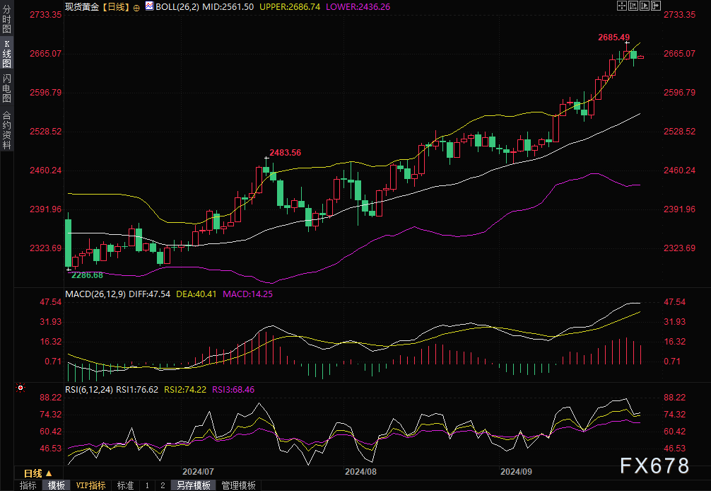 金价上周五收报2658.76美元/盎司,此前连续四个交易日刷新历史高点。上周四,金价创下了2,685.42美元的历史新高。