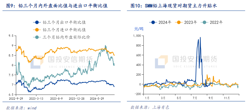 9月LME铅库存高位波动,回调不畅,目前仍处于20.2万吨高位,0-3月深贴水42.74美元,海外需求仍显不足。10月国内炼厂复产预期强。美元指数走弱,人民币对美元汇率破7,LME铅震荡上行,沪铅低位整理,铅现货进口亏损扩大至1500元/吨以上,伦铅相对高估,推荐关注跨市反套机会。