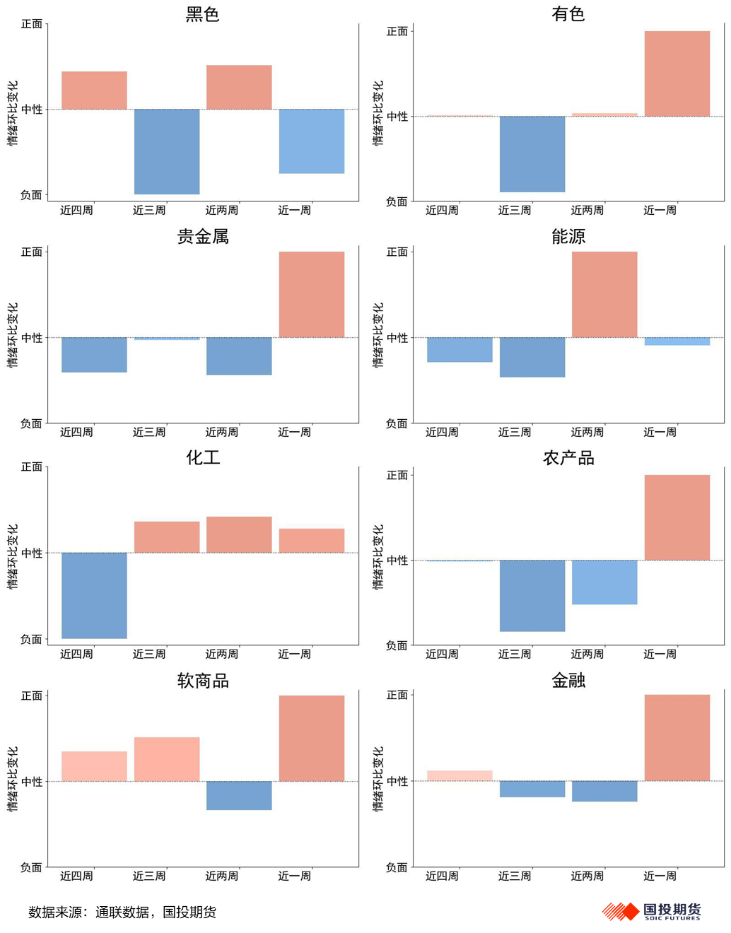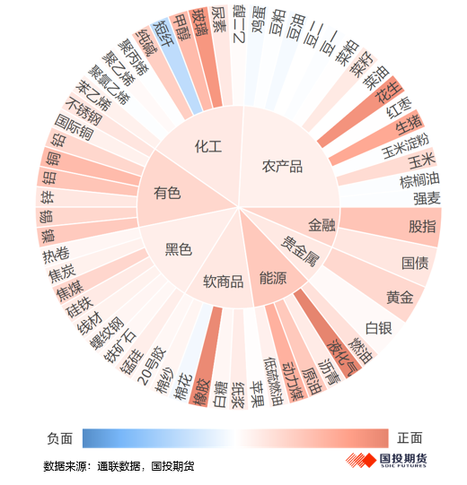 注:内圈-大类板块情感强度,外圈-品种情感强度