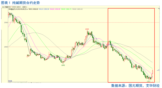 三季度,纯碱主力合约走出一波流畅的下跌趋势,主要逻辑是基本面供强需弱,尤其是在供应居高不下的背景下,需求端负反馈程度逐步加深,一方面是光伏玻璃产量触顶回落,行业产能出清加速,另一方面是浮法玻璃持续累库,市场猜测或将存在检修,纯碱需求表现不佳。由于供需基本面相配合,叠加经济数据表现无显著利好,促成趋势性下跌行情。不过,在行情在下跌中也有几次企稳修复,7月31日至8月5日是个别企业检修及主力逐步换月影响,8月中下旬是美联储降息及纯碱供应短时下滑共同提振市场情绪。