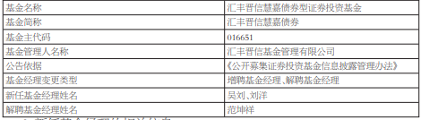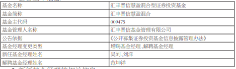 范坤祥离任汇丰晋信慧盈混合汇丰晋信慧嘉债券