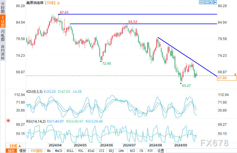 北京时间19:55,WTI原油报67.86美元每桶,跌幅0.47%。布伦特原油报71.29美元每桶,跌幅0.90%。