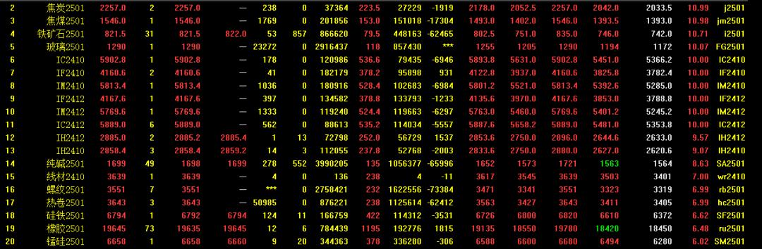 9月最后一个交易日,A股市场房地产板块掀起了涨停潮,众多房企股票表现抢眼。与此同时,商品市场黑色系板块也迎来了全线上涨,截至下午收盘,焦炭、焦煤、玻璃、螺纹钢、热卷均封涨停板,铁矿石涨近11%,硅铁、锰硅涨超6%。