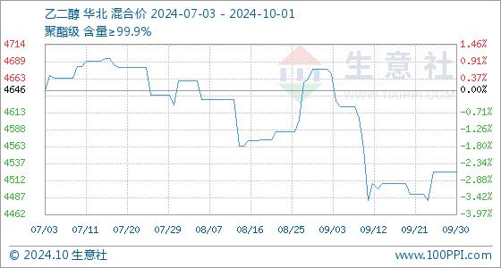 10月1日生意社乙二醇基准价为4525.00元/吨
