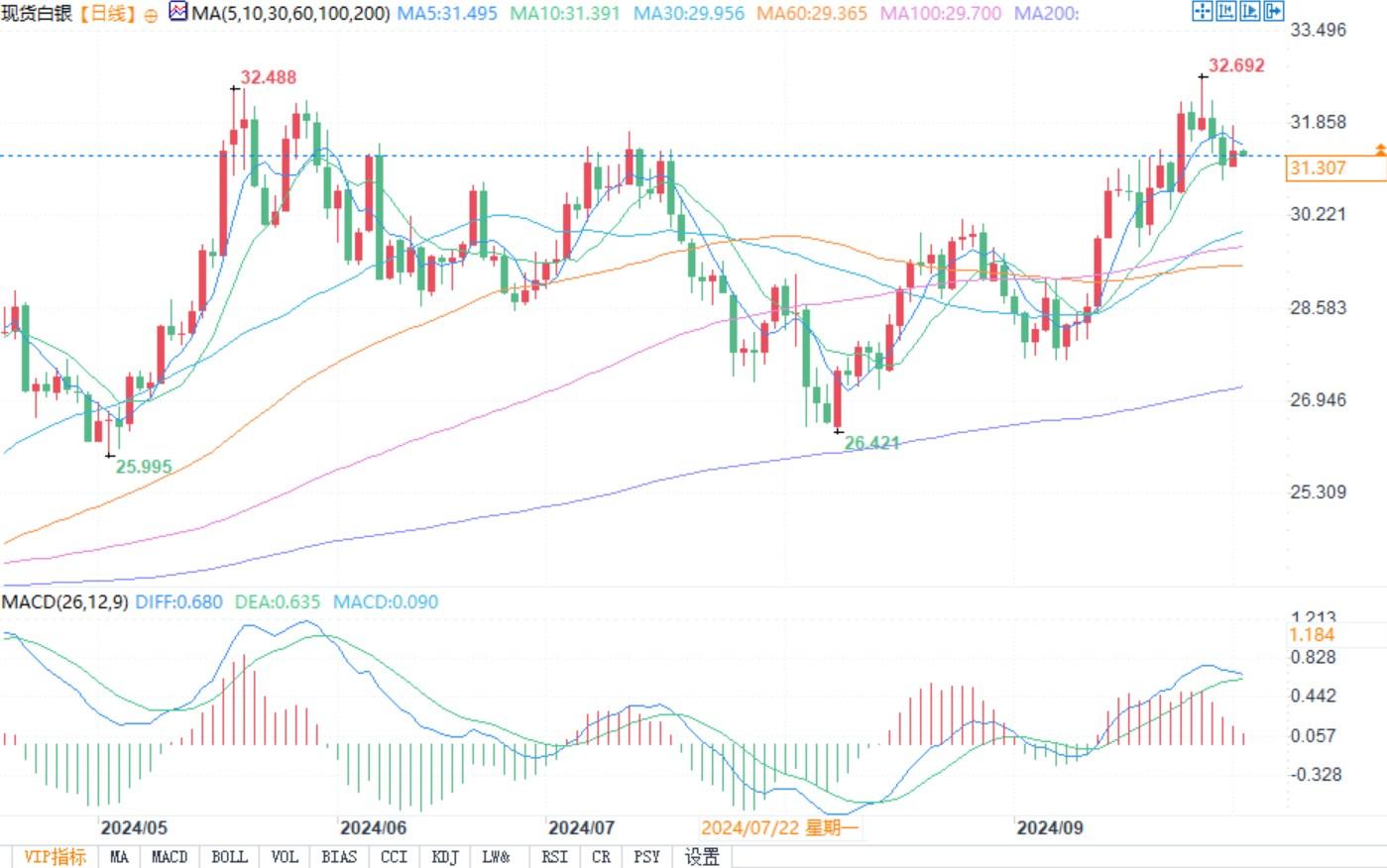 北京时间10月2日9:01,现货白银报31.30美元/盎司