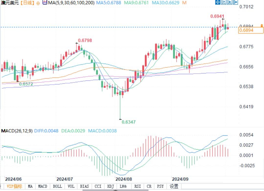 若澳元兑美元重返上升通道,将强势看涨挑战0.7000