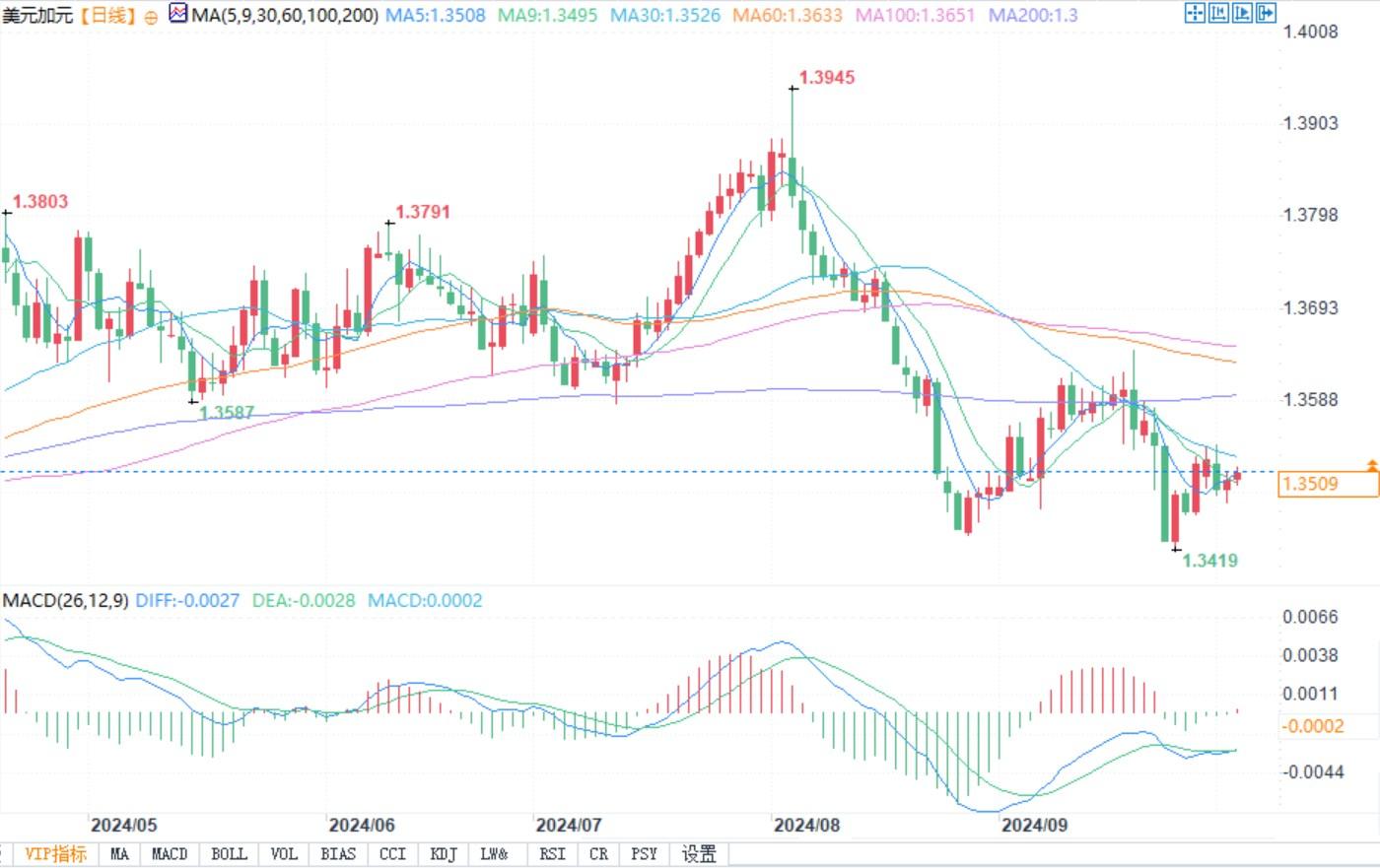 美元兑加元日线图