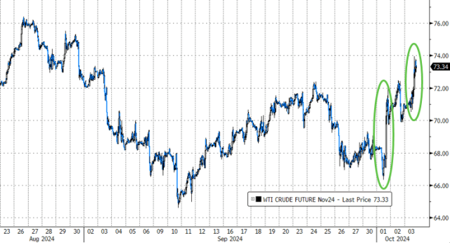 拜登的说法加剧了外界对冲突升级的担忧,WTI原油期货价格盘中一度涨超5.69%,刷新日高至74.09美元/桶,收盘涨幅为5.15%。布伦特原油期货涨4.98%,涨穿50日均线,为7月份以来首次。
