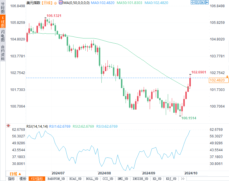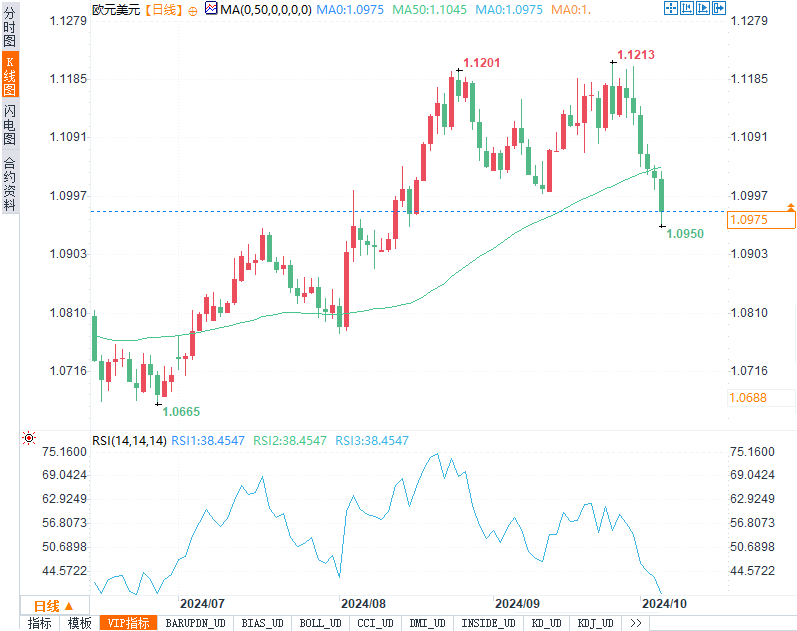 数据显示,美国9月新增25.4万个就业岗位,远超预期的14万个。同时,失业率意外从8月的4.2%降至4.1%,表明劳动力市场继续保持强劲。这一数据削弱了市场对美联储将在11月大幅降息的预期,导致市场调整了未来的货币政策预期。