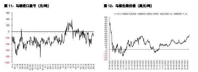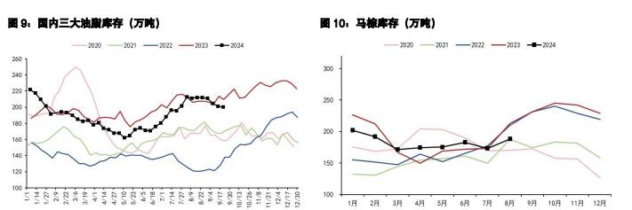 1、SPPOMA 马棕 9 月高频数据显示 9 月减产 7.5%,且船运调查机构预计9 月前30 日出口环比增加0.83%-1.5%,意味着 9 月马棕库存或环比持平。