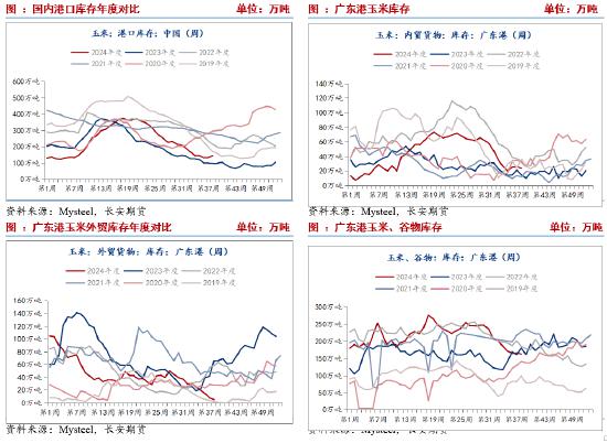 整体来看,国内玉米、谷物库存持续去化,渠道供应压力明显降低。但受制于新粮上市、政策性进口拍卖以及市场悲观心态,现货价格持续弱势。未来,1-2个月内,新粮持续集中供应,港口到货量有望逐步增加。不过考虑需求随采随用,库存回升幅度或慢于往年同期,来自渠道库存的供应压力预计有限。