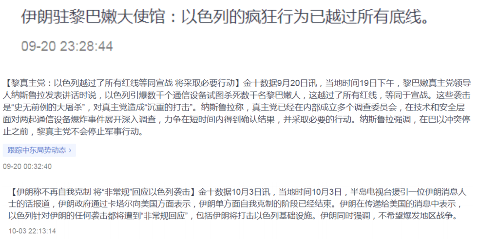 回看此次伊朗导弹袭击事件,以色列针对黎巴嫩真主党的通信设备事件以及对领导人的一系列刺杀触发了伊朗的底线,这是在 过去持续一年时间里不曾出现过的言论,伊朗在9月20日明确表达了这一观点。从这一点来看,随后伊朗的强硬回击和“不再自我克 制”就相对容易理解。