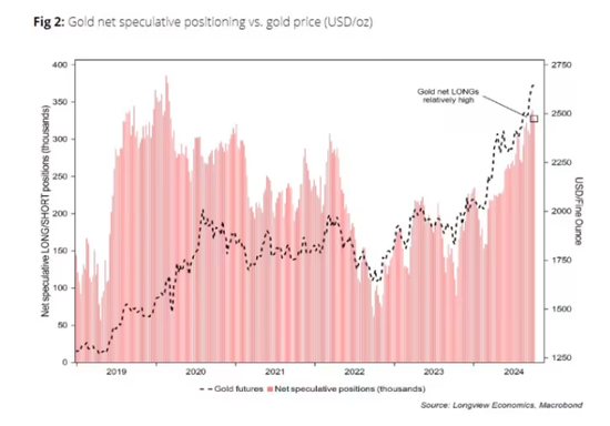 黄金的净多头头寸仍然较高