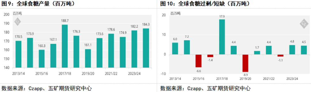 据Czapp最新预测显示,2024/25榨季全球食糖产量将达到1.843亿吨,这依然是历史第二高的糖产量,同比上榨季增产210万吨。全球食糖消费量在2024/25榨季将达到1.798亿吨,进而2024/25年度全球产量过剩的估计为450万吨,过剩量较上榨季减少30万吨。