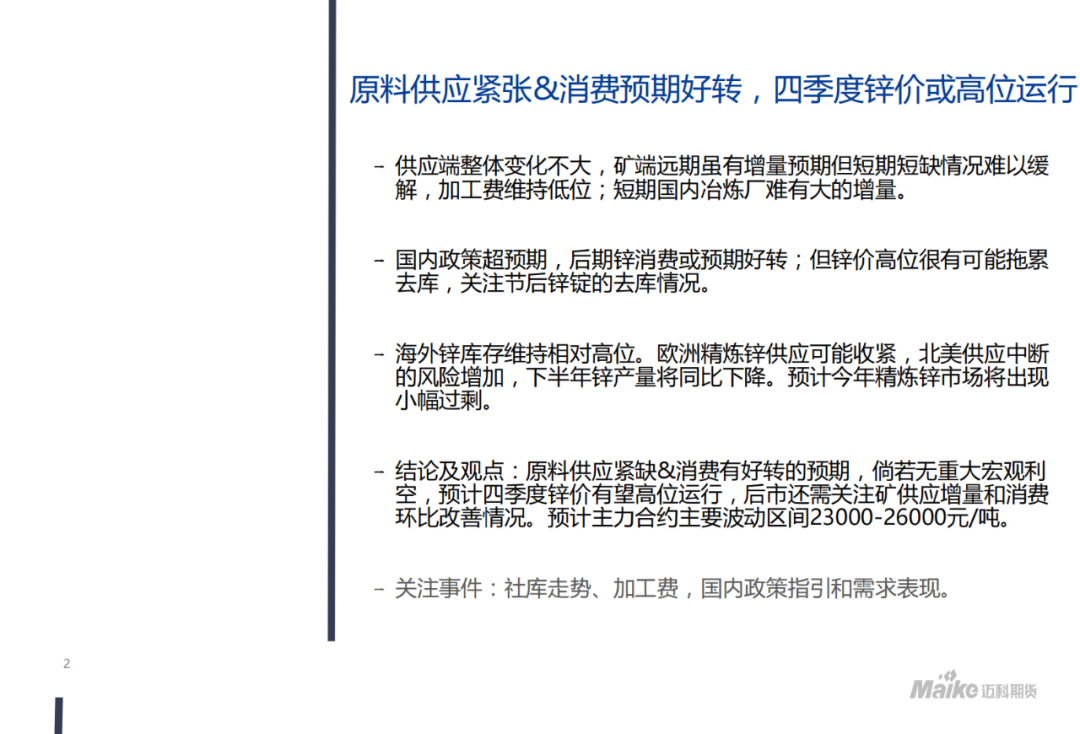 【迈科锌四季报】原料供应紧张&消费预期好转,四季度锌价或高位运行