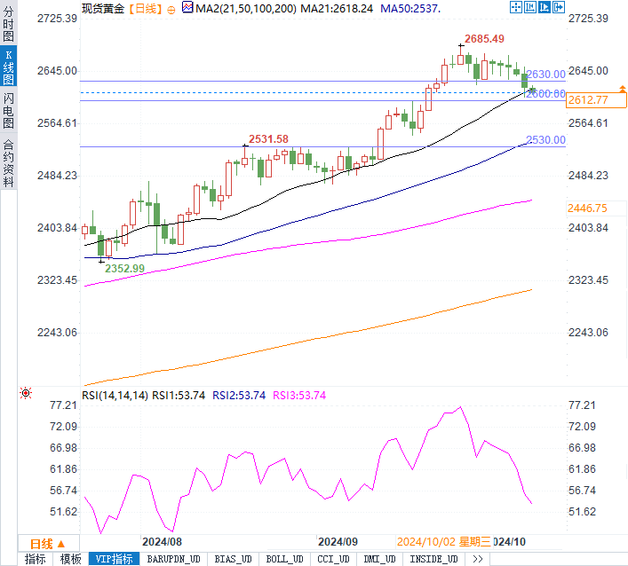 如果金价跌破2600美元,后续可能进一步下探2560美元/盎司的支撑位,接着是2530-2535美元/盎司区域,以及心理关口2500美元/盎司。如果这些水平被有效突破,黄金的中期走势将显得更加脆弱。