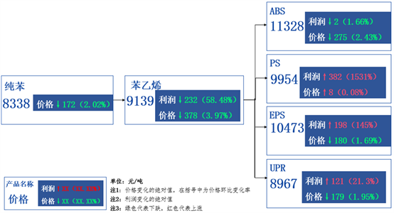 导语:9月份原油延续跌势,对国内化工品市场形成利空,但苯乙烯终端需求暂稳,月内虽多数产品价格跟跌,但终端三S部分产品利润得到明显修复。