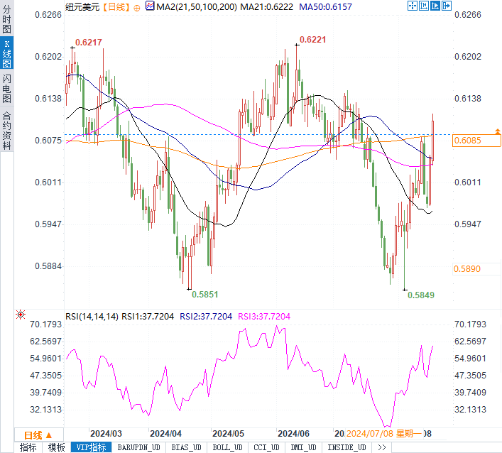 总体来看,外汇市场本周的波动主要受到央行政策和经济数据的驱动。新西兰联储的降息举措为纽元带来了巨大的下行压力,而美元在美联储鹰派预期的支撑下继续走强。随着更多重要经济数据的发布,市场对未来政策路径的预期可能会发生进一步调整。投资者需密切关注美国CPI数据以及各国央行的最新表态,以应对未来的市场波动。
