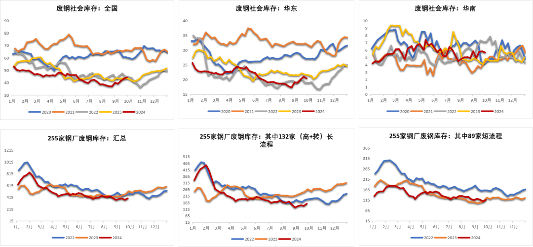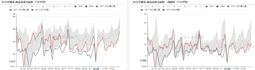 成材库存:中性 成材库存端绝对水平较低,暂不存在较大库存压力。十一期间由于供给不停,需求施工端放假阶段性停滞,造成季节性累库,预计节后需求回暖或将重回去库格局。