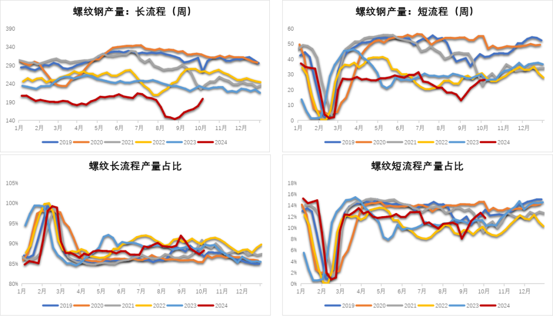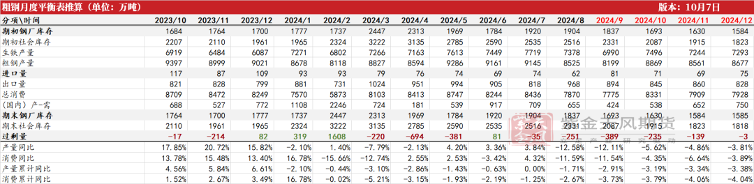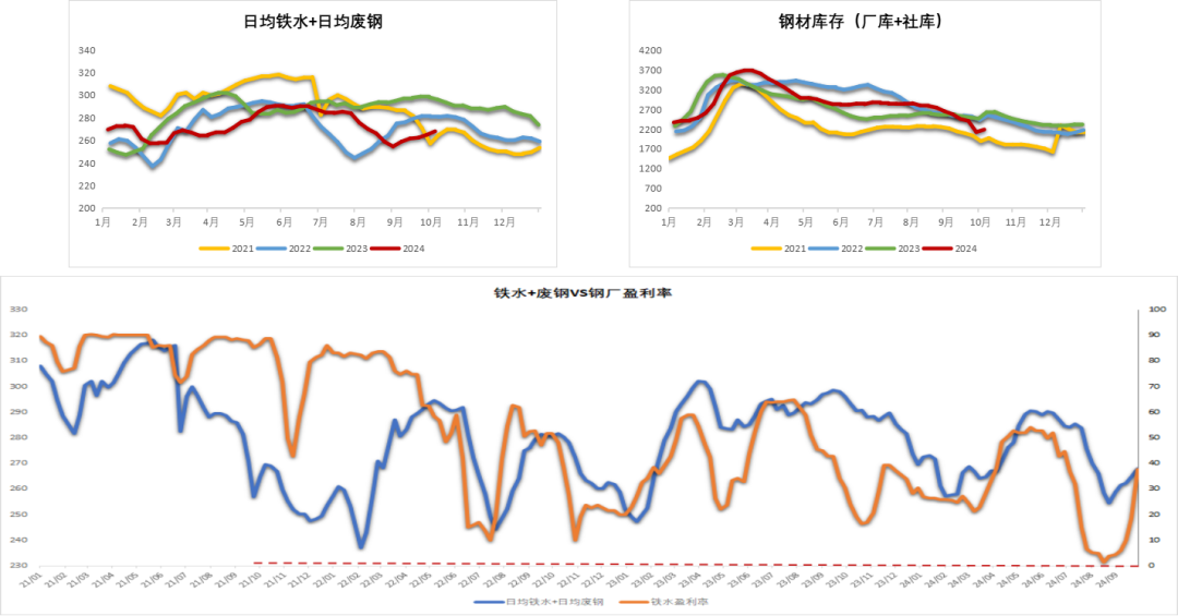 核心观点:偏多 受到宏观接连刺激政策影响,黑色整体触底回升。基本面来看,节前钢材价格接连快速上涨,钢厂利润大幅回暖,钢厂盈利率明显回升至37.66%,供给端日均铁水回升至228万吨,钢厂生产积极性大幅提高,节后铁水仍有一定回升空间。电炉端由于废钢跟涨较慢,生产利润短期内较为丰厚,产量快速回升在即。供给端整体呈现加速回升趋势。需求端受到9月万亿新增专项债发行以及节前政策利好刺激的作用下,目前对节后需求高度仍有一定较好预期,节后需求高点或将高于节前,政策落地仍需一定时间。总体来说,成材基本面层面供给端回升压力较大,需求端回暖虽有预期但高度及落地情况仍有待确认。价格方面,目前宏观交易权重较大,基本面较难左右价格走势。重点关注政策持续力度及政策实际落地情况。