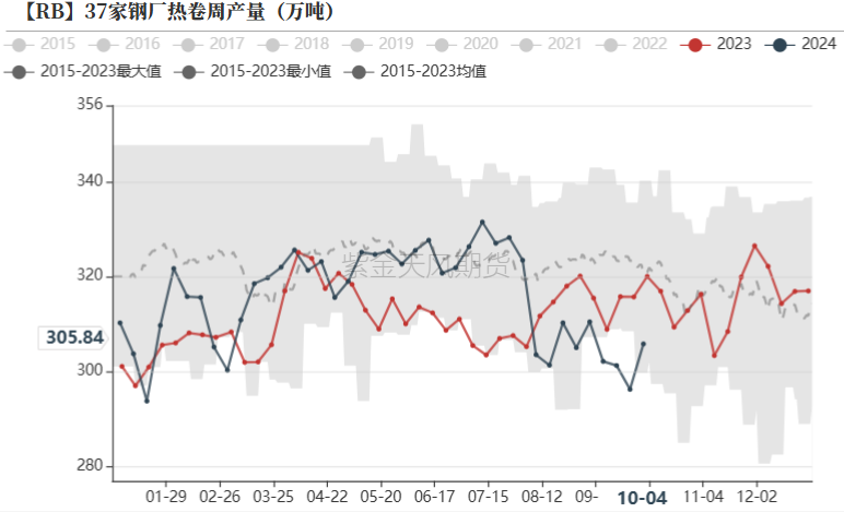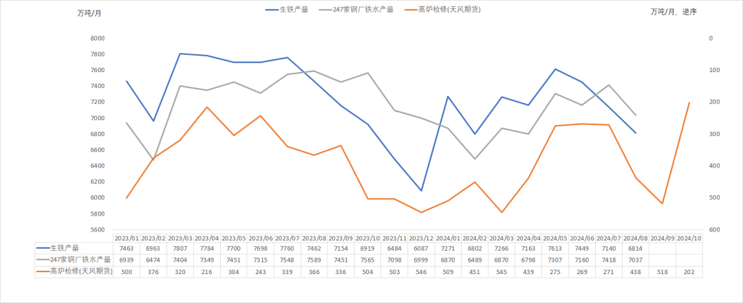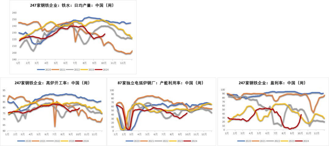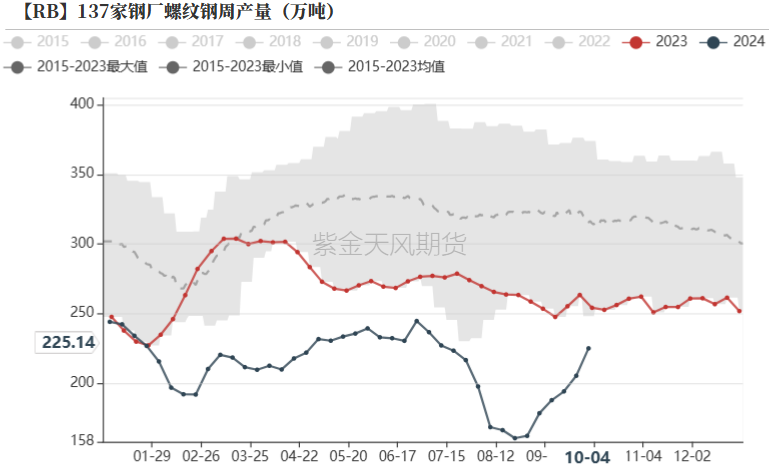 截至2024年10月4日,日均生铁产量为228.02万吨,环比上升3.16万吨(增幅1.4%);相比于去年同期下降7.7%。