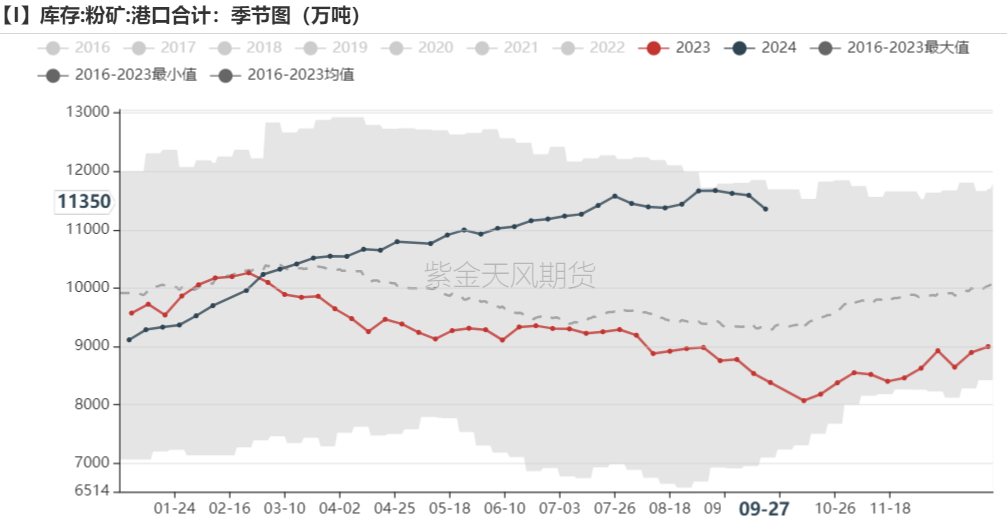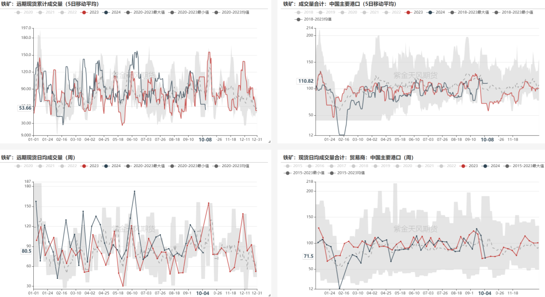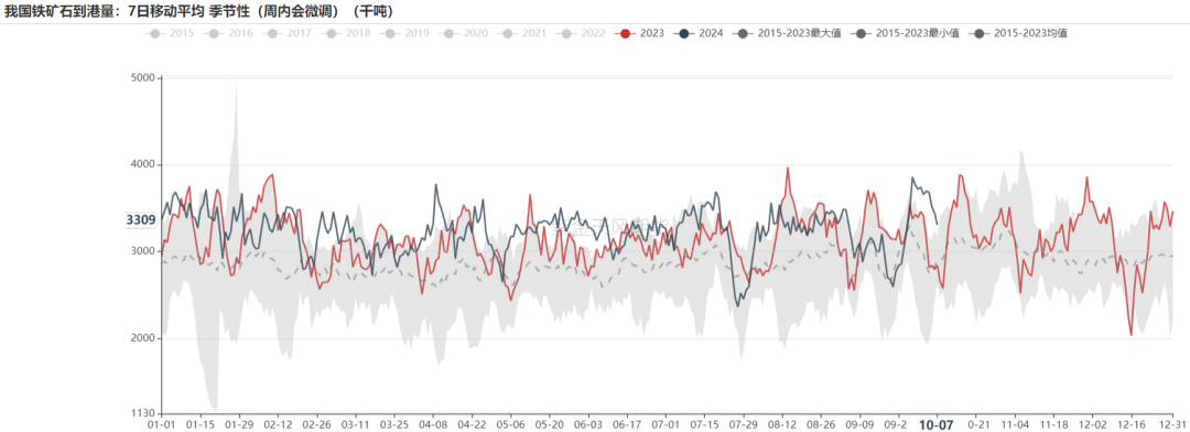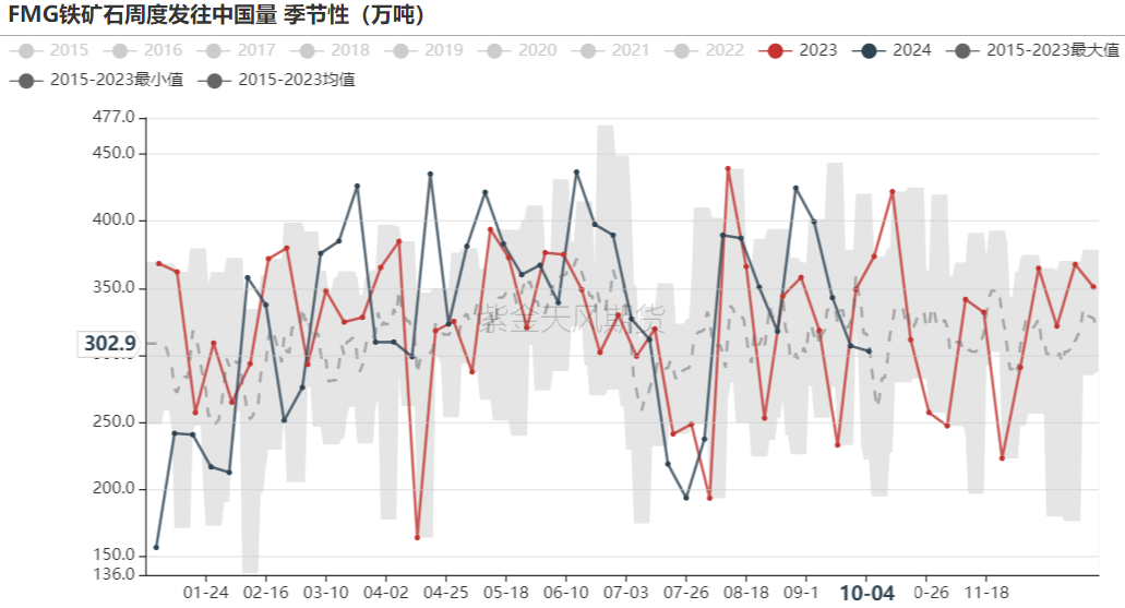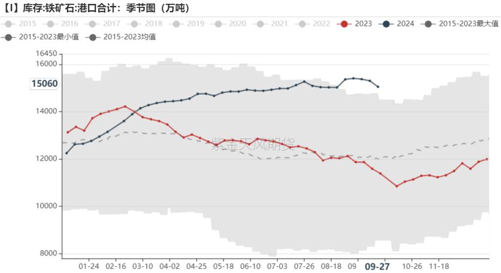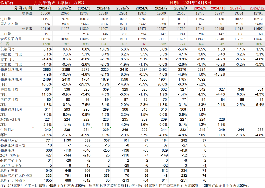 周度评述 国庆期间供应端发运下行;澳巴回落明显,非主流降幅较小。我国到港总量受台风影响下滑,预计后续到港有明显回升。需求端受政策及情绪带动,成材利润大幅上行,10月钢厂检修计划看产量增长明显,247日均铁水+3.16万吨至228.02万吨。库存端,钢厂厂内进口矿库存环比减291万吨,国庆期间去化速度持平去年同期;港口库存节后小幅去库,总量仍维持高库存状态。供应端宽松状态未变,巴西降水暂无明显增加;需求端10月铁水预计月均230万吨以上。需求短期受政策刺激明显,热卷库存未出现季节性累库,但需求高度及持久性仍有待确认。目前基本面影响力度较弱,重点关注政策面消息。观点维持震荡。