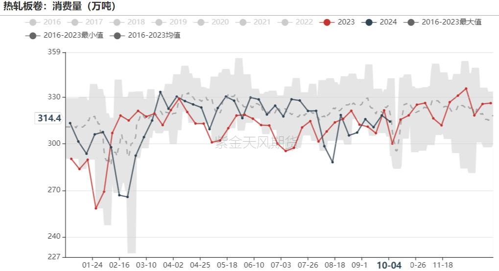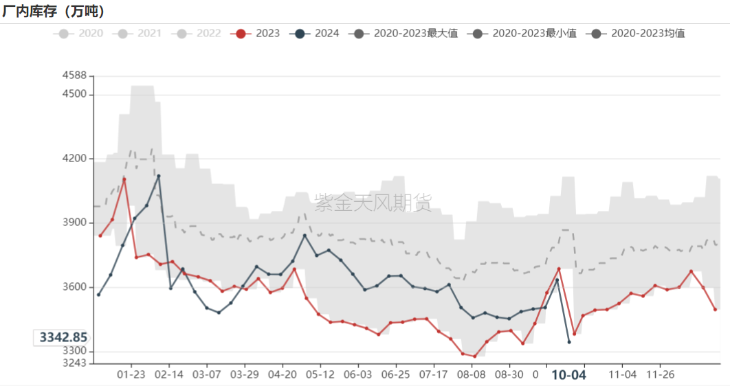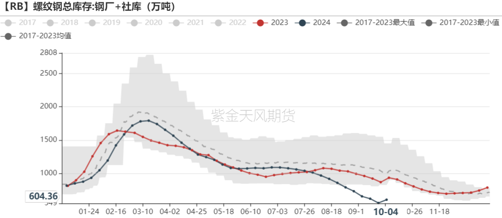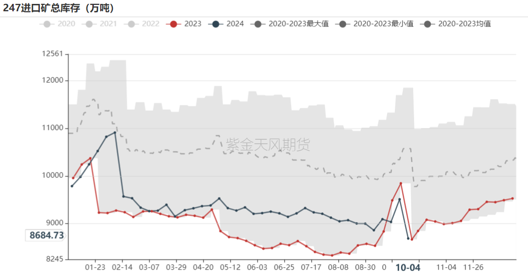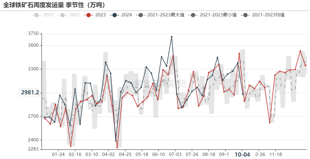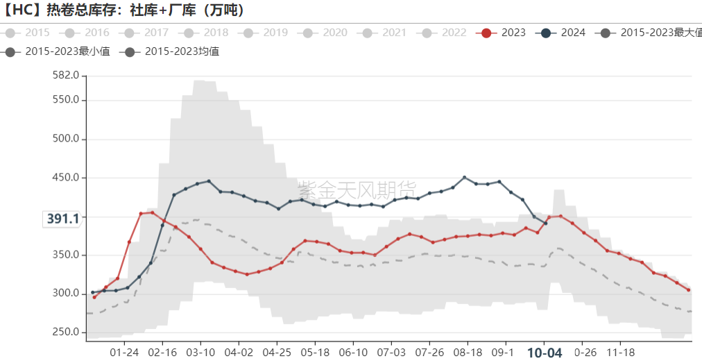 周度评述 国庆期间供应端发运下行;澳巴回落明显,非主流降幅较小。我国到港总量受台风影响下滑,预计后续到港有明显回升。需求端受政策及情绪带动,成材利润大幅上行,10月钢厂检修计划看产量增长明显,247日均铁水+3.16万吨至228.02万吨。库存端,钢厂厂内进口矿库存环比减291万吨,国庆期间去化速度持平去年同期;港口库存节后小幅去库,总量仍维持高库存状态。供应端宽松状态未变,巴西降水暂无明显增加;需求端10月铁水预计月均230万吨以上。需求短期受政策刺激明显,热卷库存未出现季节性累库,但需求高度及持久性仍有待确认。目前基本面影响力度较弱,重点关注政策面消息。观点维持震荡。