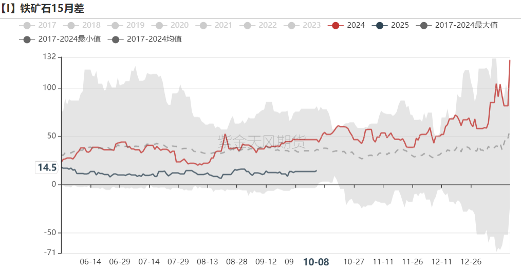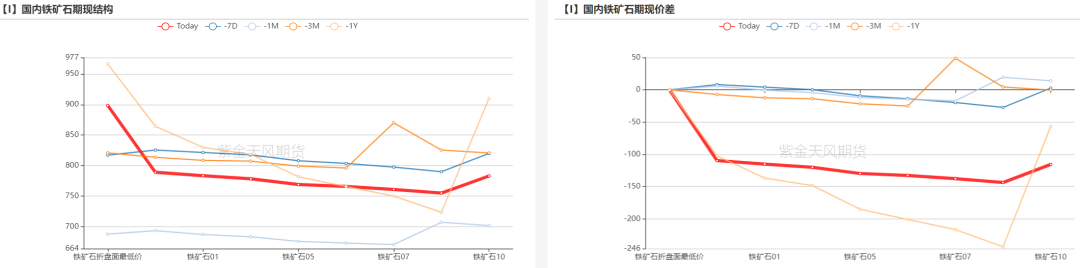 现货 铁矿现货成交量下行,远期货成交量下行,01合约基差率1.7%左右,基差上行,基差率上行。