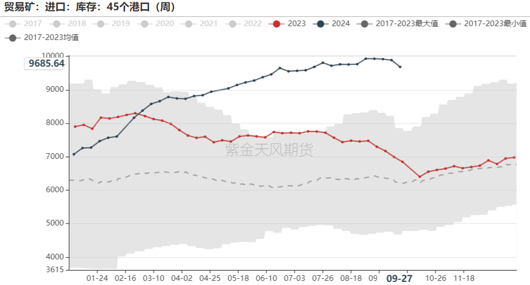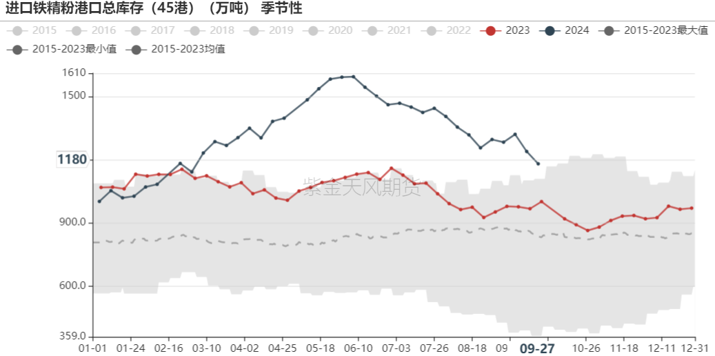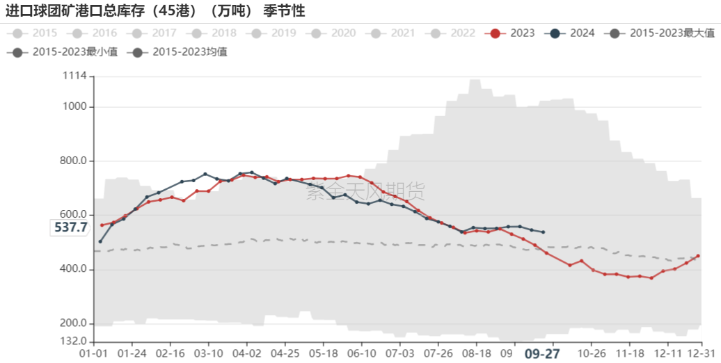 港口:节前45港库存环比减259万吨,贸易矿占比64%,环比下降