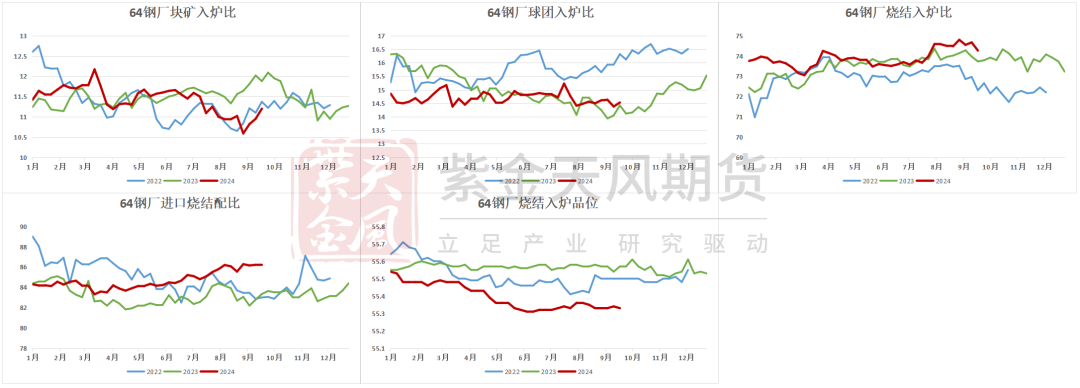 钢厂:烧结入炉比下降,球团、块矿入炉比上升;烧结入炉品位下降