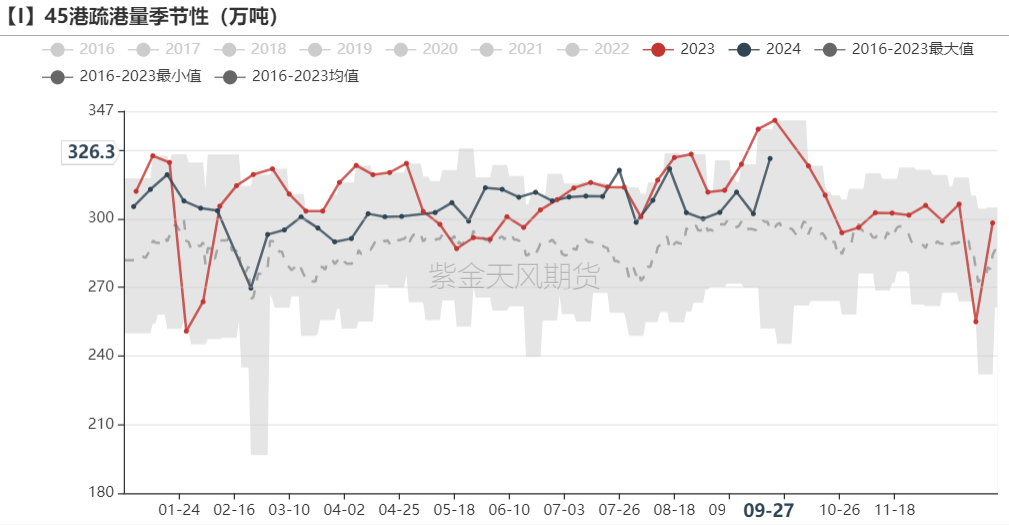 疏港:上周45港日均疏港量326万吨环比增24万吨/日