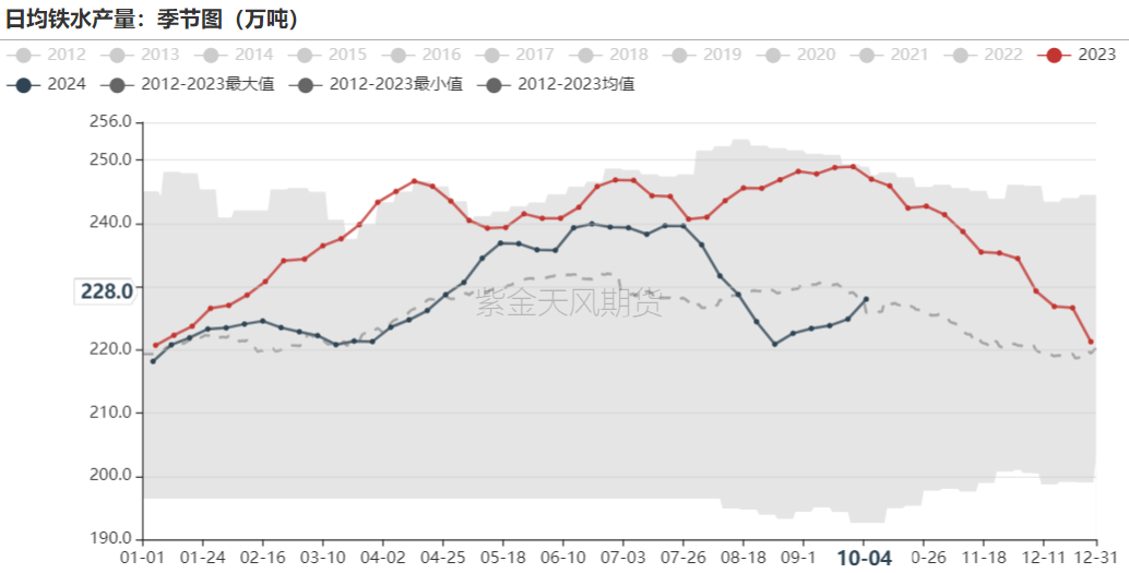 铁水 本周钢联公布247样本铁水产量228.02万吨,环比+3.16万吨,9月日均铁水223.7万吨。
