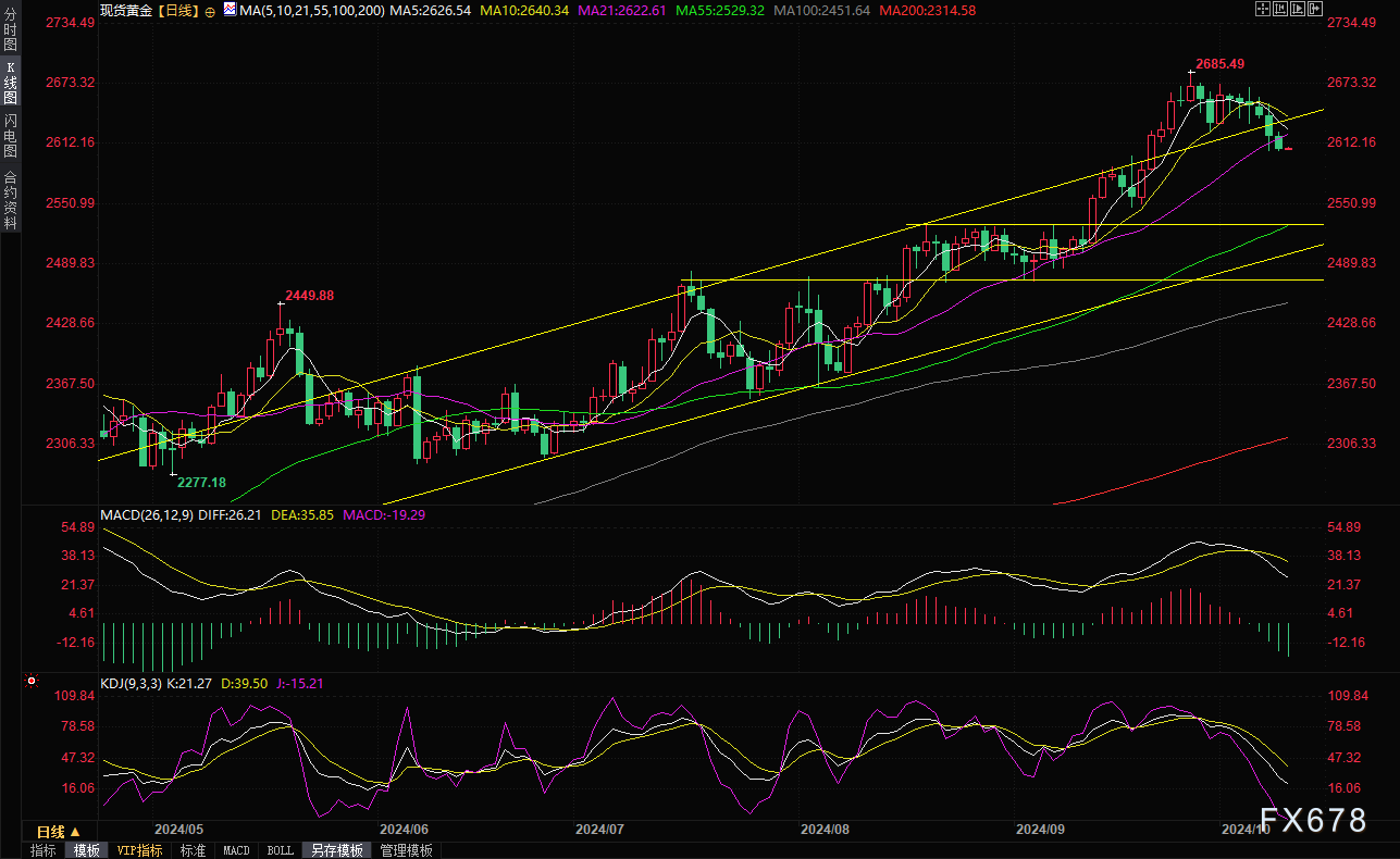 汇通财经APP讯——周四(10月10日)亚市早盘,现货黄金窄幅震荡,目前交投于2608.99美元/盎司附近。金价周三继续走弱,为连续第六日下跌,盘中最低触及2605.10美元/盎司,收报2607.66美元/盎司,受累于美元上涨刷新逾一个半月高位,以及对美联储11月大幅降息的预期减弱,美债收益率刷新逾两个月高位。