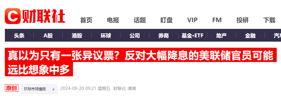 财联社早在三周前就曾在《真以为只有一张异议票?反对大幅降息的美联储官员可能远比想象中多》的预判文章中提醒过投资者,对于上月降息50个基点的决定,美联储内部的反对声可能绝不只有“鹰王”鲍曼一人,而最终,周三的会议纪要透露的核心信息,恰恰便是我们三周前的断言。