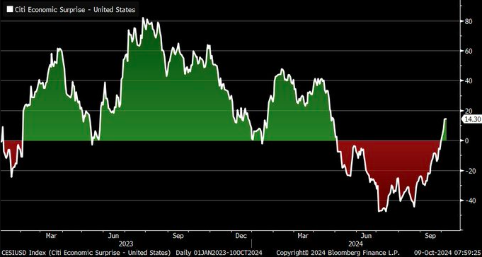 但在过去几周,该指数却已神奇般地迅速转为了正值,并来到了逾半年的新高。要知道,美联储降息的渗透效应可不会那么快,而且目前的一系列数据大多也都是至少9月或更早前的数据。