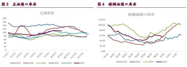 另外,由于进口利润持续倒挂,国内棕榈油 11 月和 12 月船期出现少量洗船,后期到港量或将不及市场预期。在国内天气逐渐转凉的背景下,棕榈油消费也将面临季节性转淡的趋势。