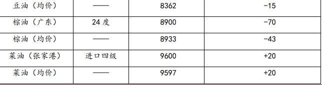 油脂期价整体震荡偏弱,豆油期价跌幅 1.5%,期价冲高回落,暂获 5 日均线支撑,伴随增仓 1.2 万手;棕榈油期价跌幅超 2%,暂获 5 日均线支撑,资金变化不大;菜籽油期价跌幅超 1%,期价依托 5 日均线支撑,资金变化不大。