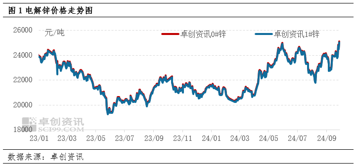 根据卓创资讯监测,9月份,卓创资讯现货0#电解锌月均价为23861元/吨,环比涨3.10%,同比涨8.92%。月内日均价高点为25100元/吨,低点22790元/吨,高低价差2310元/吨,振幅10.14%。日价格波动区间在22700-25200元/吨。