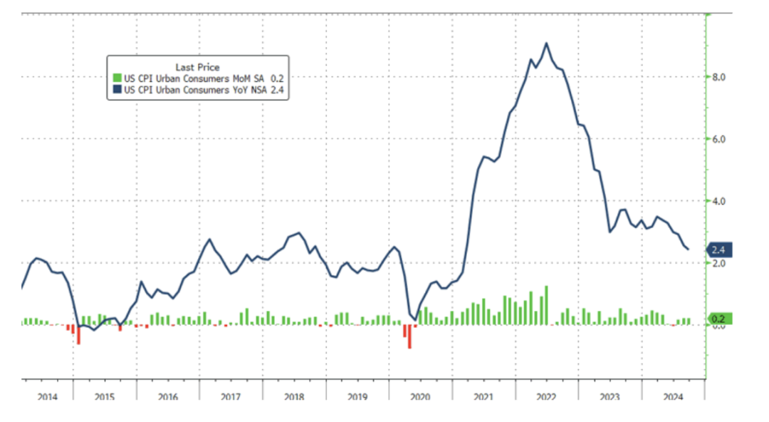 北京时间10月10日晚间,美国劳工统计局发布的数据显示,美国9月CPI同比上升2.4%,略高于预期的2.3%,较前值的2.5%略有下降;美国9月CPI环比上升0.2%,亦高于预期的0.1%,前值为上升0.2%。