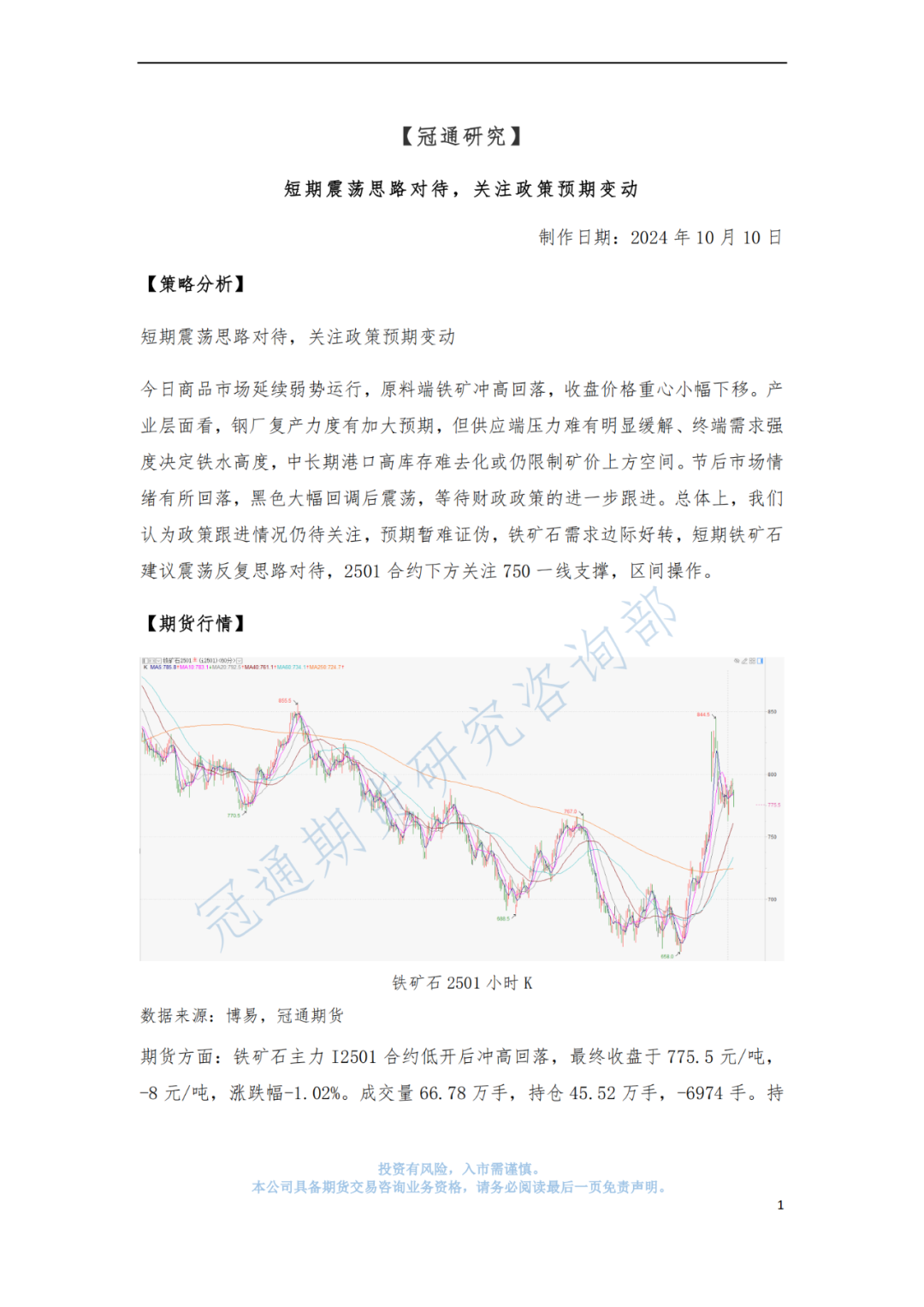 冠通研究--铁矿石策略:短期震荡思路对待,关注政策预期变动