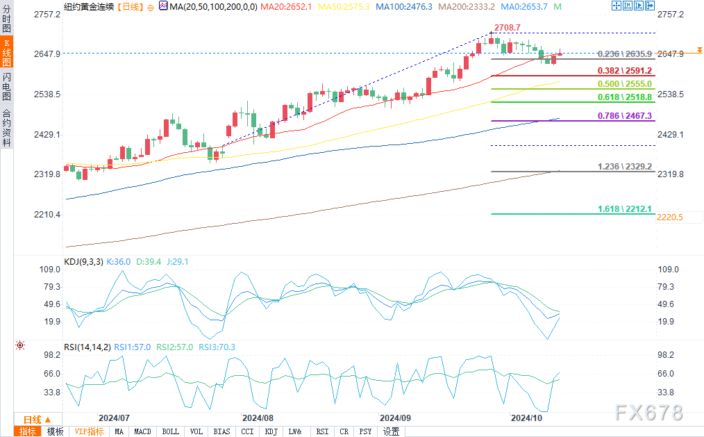 技术分析师一直在密切关注最近的价格走势,价格在本轮反弹中首次回落到表明可以接受的调整水平。从9月26日的收盘价到最近的低点2,626.10美元,价格下跌了69美元,使目前的价格跌破23.6%的斐波那契回撤位,这是一个关键的技术指标,通常预示着潜在的支撑或阻力区域。