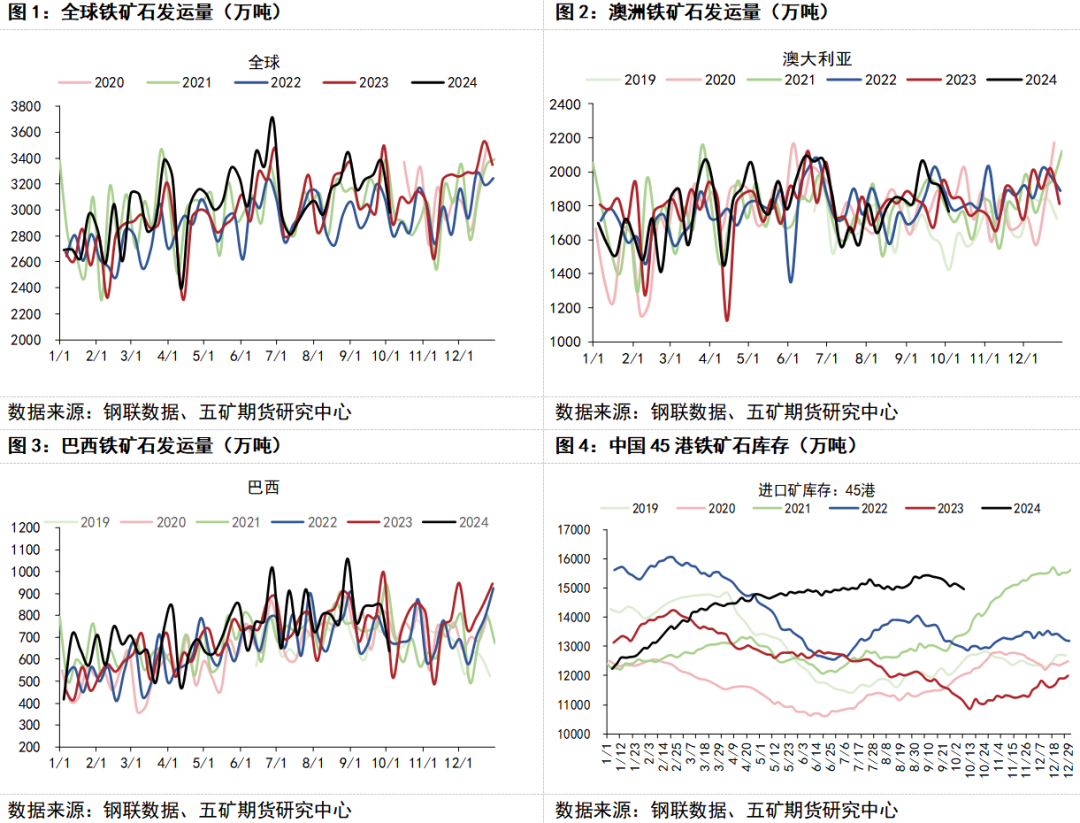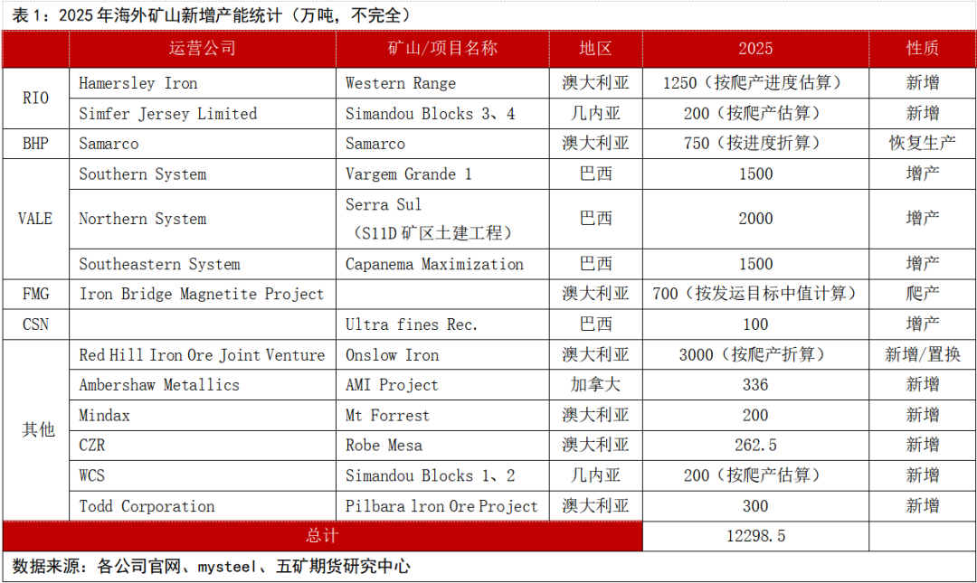 年初至今海外铁矿石矿山发运积极,截至10月4日,钢联口径全球铁矿石发运累计超过12亿吨,同比去年增加超4000万吨;中国45港口铁矿石库存1.5亿吨以上,铁矿石供应十分充足。展望2025年,海外矿山仍处于产能释放周期,铁矿石供给宽松格局仍将持续,本文将对25年海外矿山产能释放情况进行统计梳理。